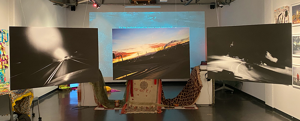The work is part of Singh’s ongoing oeuvre, exploring Home, Nostalgia, and the Third Space through themes of migration, memory, spirituality, and archetypal patterns. His immersive video installations combine archival footage, projection, sound, and poetic text, transforming the gallery into a space illuminated only by memory and imagination.